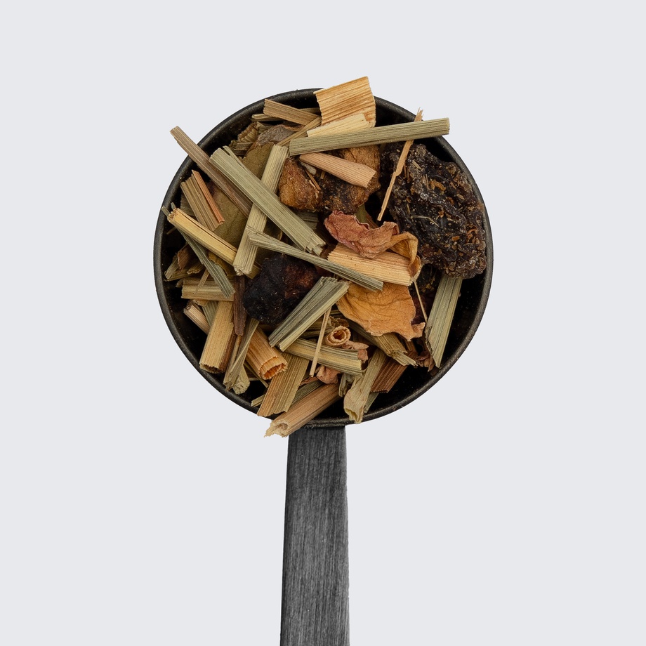 Lemongrass, apple, raisins, rose buds & petals, ashwagandha, chaga, orange peel, vanilla extract.
