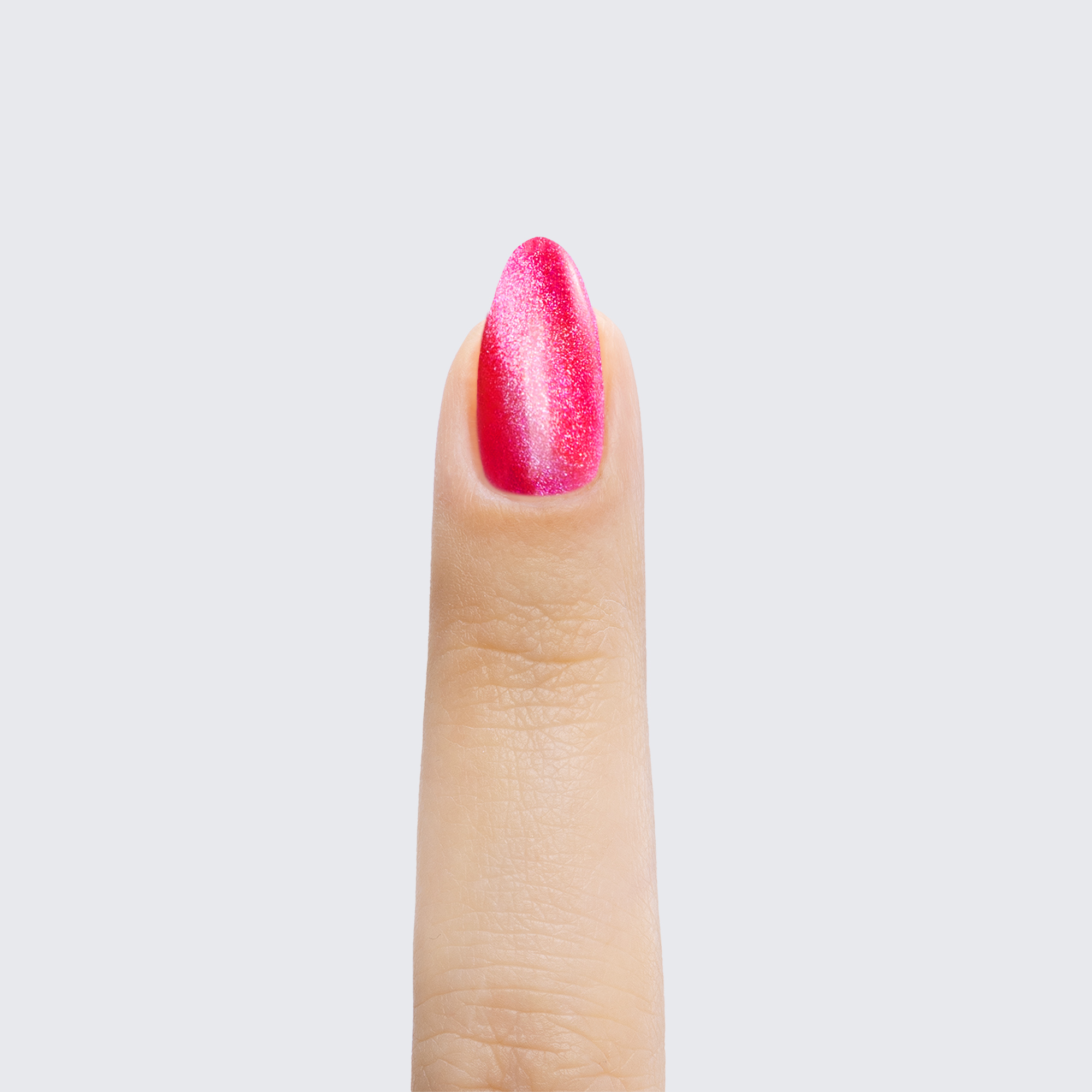 Pink red. Dark. Deep hot pink magnetic shimmer. Opaque. Warm undertone.